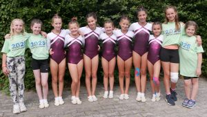 Die jüngeren Turnerinnen im Alter von 10 bis 12 Jahren traten erstmals im Schülergruppenwettkampf (SGW) an und absolvierten die Disziplinen Turnen, Ballweitwurf und Pendelstaffel. Zudem mussten die neun Mädchen noch gemeinsam eine Überraschungsaufgabe lösen, was Tessa Baumgartner, Emma Grießer, Alina Hausmann, Lara Jahn, Emilia Kraus, Iris-Stephanie Löhr, Theresa Ochs, Annika Scheuble und Nora Thieme gut gelang. Am Ende durften sie sich bei ihrem ersten Wettkampf über einen 16. Platz freuen.