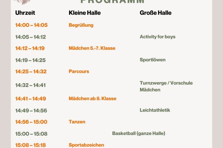 Aufgepasst, Kids und Eltern! Nach den Sommerferien starten wir endlich wieder mit unseren Übungsstunden im Kinderturnen! Wir freuen uns riesig darauf, euch alle nach der Sommerpause wiederzusehen und gemeinsam sportlich aktiv zu sein. Unsere regulären Stunden beginnen ab dem 09. September 2024. Bitte beachtet, dass einige Gruppen erst etwas später starten. Sportlöwen Jungs ab...